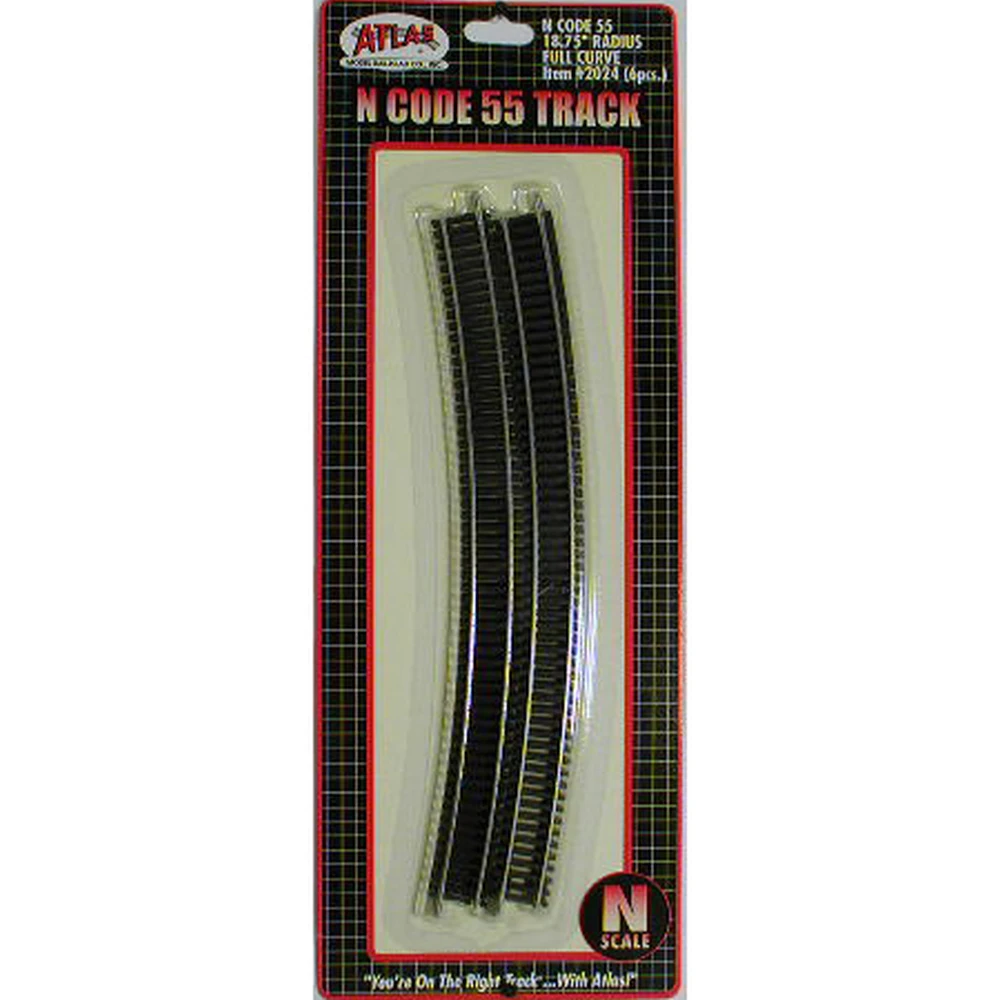 Atlas N Scale Code 55 Straight and Curved Snap Track features nickel silver rail and injection-molded brown ties with wood grain detail. It has the same reliability and durability as popular Code 80 track, but with some slight differences that make it more prototypical. Code 55 track is characterized by having finer brown ties and smaller rail than traditional Code 80 track. Sectional track is fully compatible with all conventional N Scale track with Code 55 rail and conventional rail joiners. It comes in a variety of curve radii, straights, turnouts and crossings. Code 55 Snap Track is part of the Atlas N Scale Code 80 and Code 55 track line.