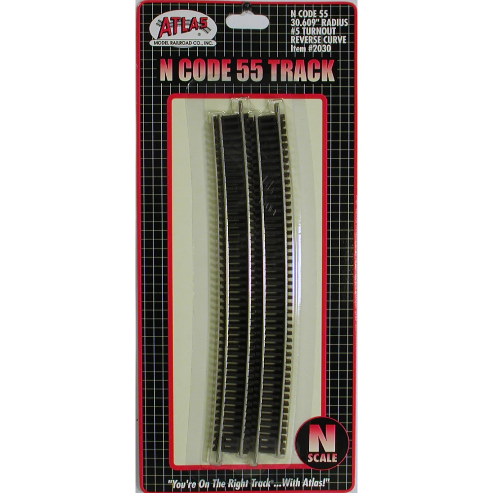 Atlas N Scale Code 55 Straight and Curved Snap Track features nickel silver rail and injection-molded brown ties with wood grain detail. It has the same reliability and durability as popular Code 80 track, but with some slight differences that make it more prototypical. Code 55 track is characterized by having finer brown ties and smaller rail than traditional Code 80 track. Sectional track is fully compatible with all conventional N Scale track with Code 55 rail and conventional rail joiners. It comes in a variety of curve radii, straights, turnouts and crossings. Code 55 Snap Track is part of the Atlas N Scale Code 80 and Code 55 track line.