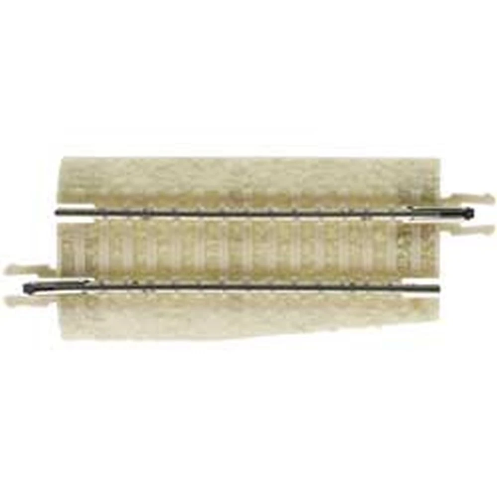 Simulated ballast roadbed Atlas N True Track features realistic Code 65 nickel silver rail in a molded roadbed base. Sections feature molded brown ties based on U.S. practice tie spacing and mottled ballast for a true-to-life look. In addition to metal rail joiners the roadbed has positive locking tabs so when you snap the sections together they stay connected. It’s available in multiple curve radii and a variety of straights, turnouts and special sections. True Track is part of the extensive Atlas N Scale track line.