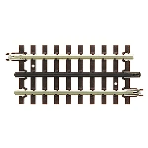 The scale-sized plastic brown track ties have a wood grain, the tie-plates have spikes, and the rail joiners have the bolt detail of real track.
