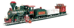 The Night Before Christmas comes complete with a 4-6-0 steam locomotive (with operating headlight, smoke and speed-synchronized sound), tender with coal load, gondola, bobber caboose, and Santa figure. Also included are a 5?4? x 4?3? oval of track (14 pieces), power pack, illustrated ?Bach Man? instruction manual and DVD format video instructions.
