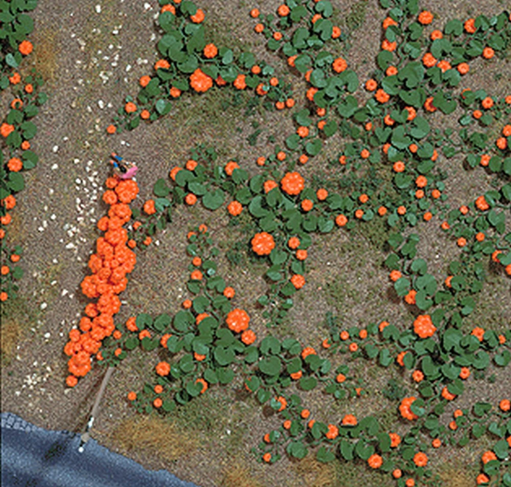 Grow Jack-O-Lanterns on your layout! Each package includes 80 pumpkins in various sizes and eight 1-5/8″ 4cm vines with realistic leaves and tendrils.
