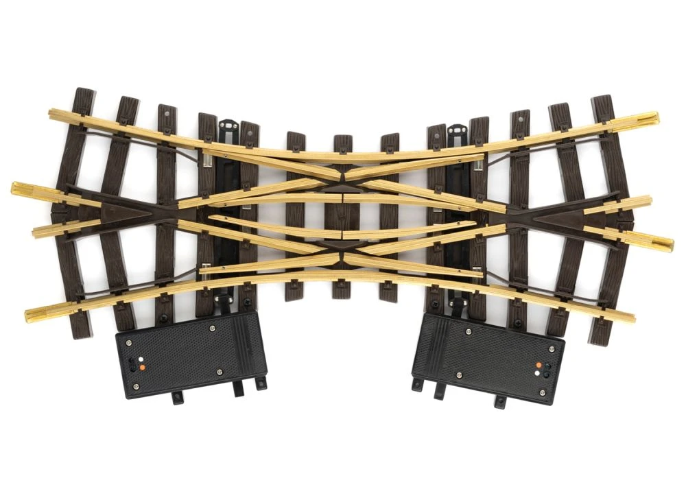 This versatile piece is both a switch and a crossing. The straight section is 375mm with a crossing angle of 22.5 degrees. Two LGB 12010 switch drives are included. LGB track has solid brass rails and realistic ties. It’s rugged and reliable for years of indoor or outdoor use.