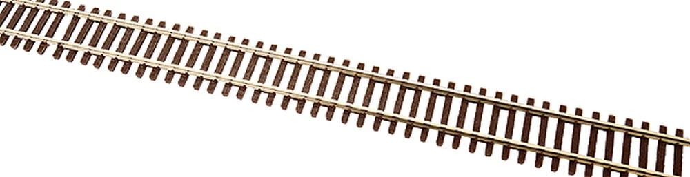 Flex-Trak(TM) features scale-size ties, tie plates and spikes, irregular tie spacing, natural brown tie color and nickel silver rail. 3′ lengths.