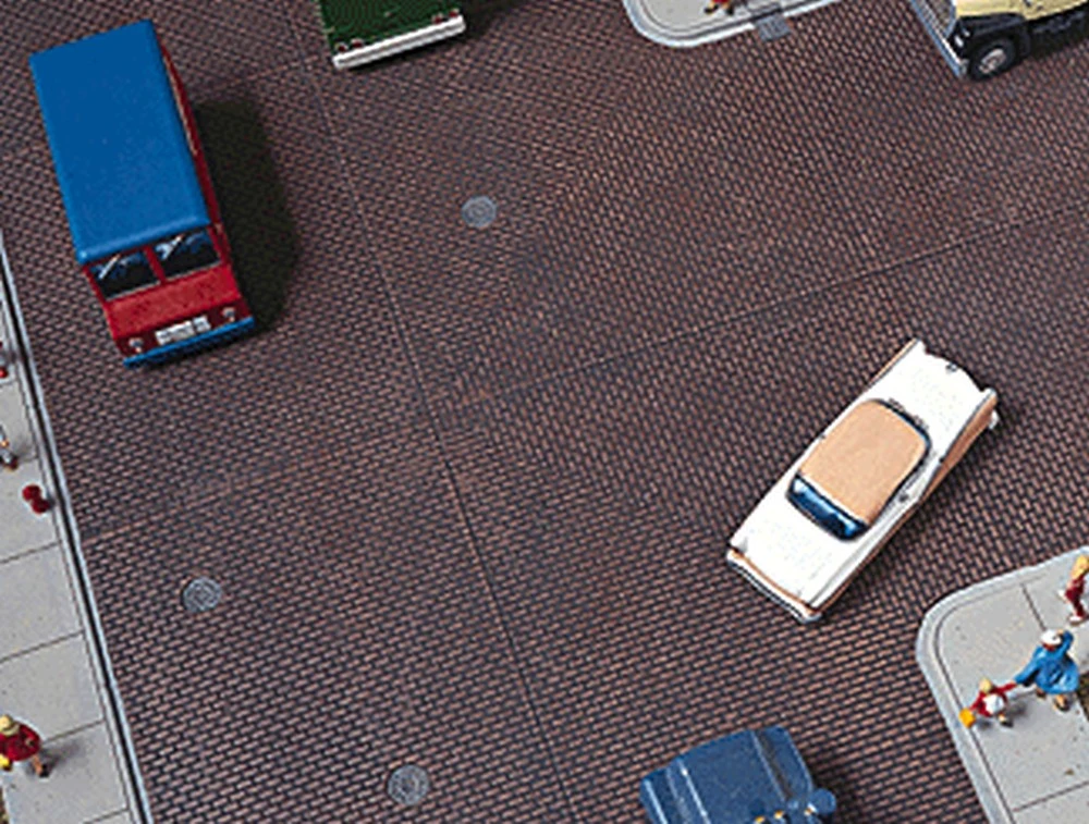 Modeling streets and roads is a quick and easy job with this complete system of detailed plastic parts. Each installs like sectional track; simply glue sections together and add sidewalks, curbs and other details. Easily painted and weathered to fit your era, choose from Brick, Concrete or Asphalt Streets.